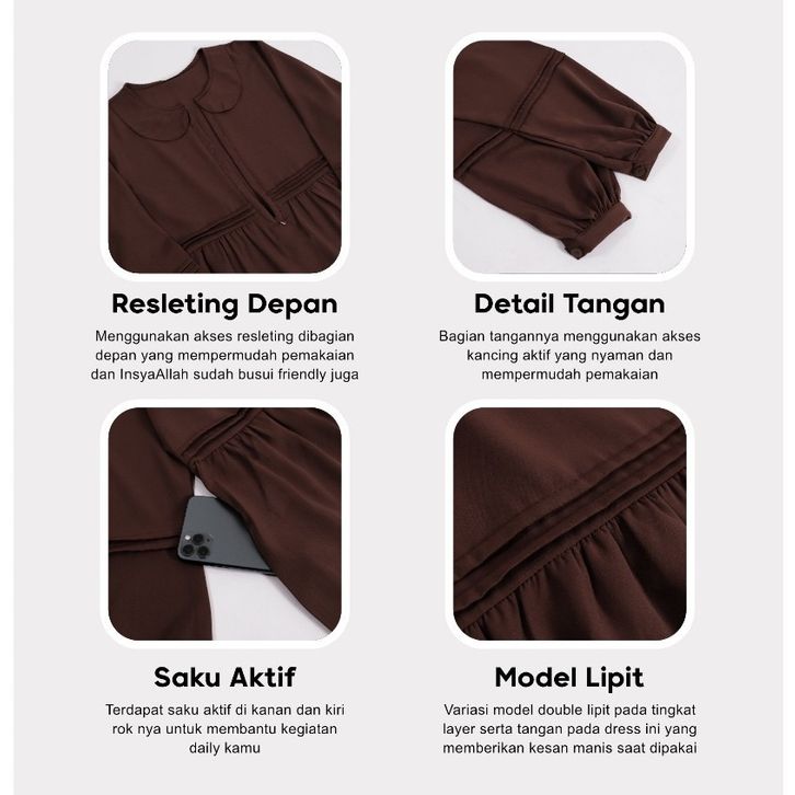 Mininos Kayla Dress Lipit | Gamis Daily Busui Remaja Muslimah Terbaru Spesial Set Gamis Lebaran Premium Dress Kondangan