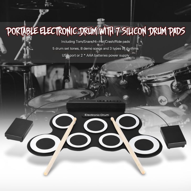 Drum Elektrik Drum Electric Electronic Digital Drum Kit 7 Pads Roll Up USB Power