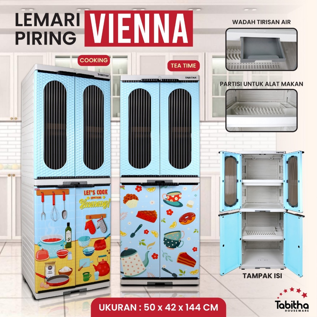 RAK PIRING MINIMALIS MODERN Tabitha Rak Lemari Piring Jumbo Printing Lemari Dapur Estetik Serbaguna - Rak Piring Vienna