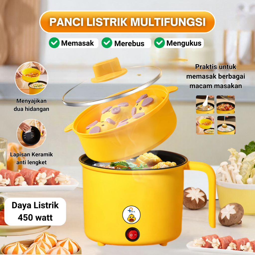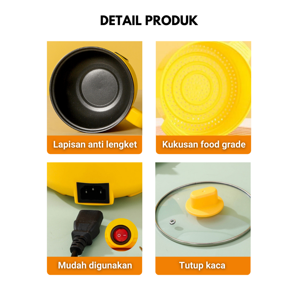New Panci Listrik Anti Lengket Serbaguna Hemat Listrik 450 Wat / Mini Rice Cooker Multifungsi Panci Kukus Elektrik /Rice cooker 450W Bisa Pakai Di Kos / Teko listrik / Kompor Listrik mEM44Sak