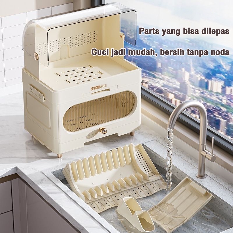 RAK PIRING MINIMALIS MODERN Rak Piring Rak Piring Plastik Tertutup Rak Pengering Piring Lipat 3/4 Susun Estetik