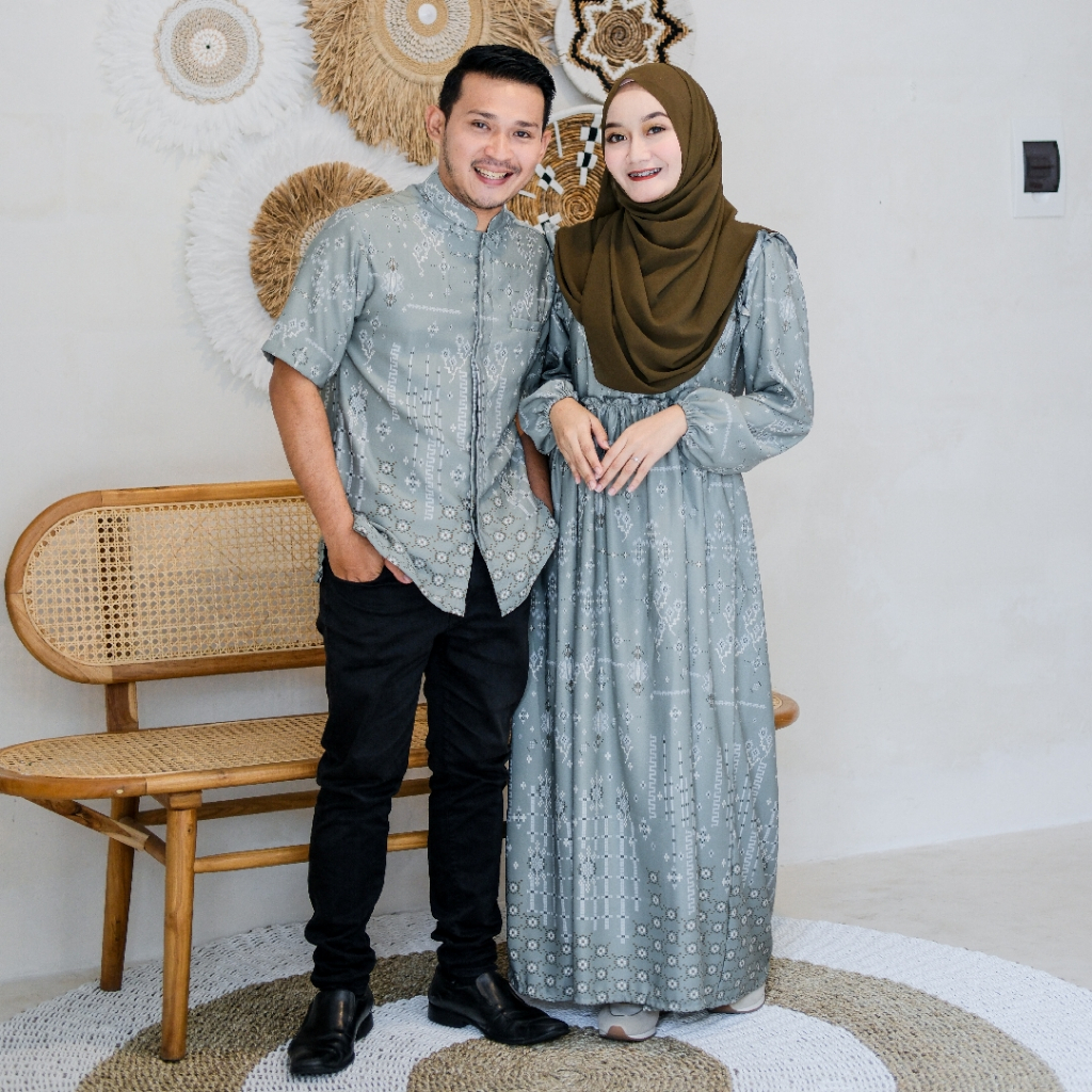 Gamis Couple Keluarga Seravina Sage Green Series Set Gamis Koko Terbaru Lebaran