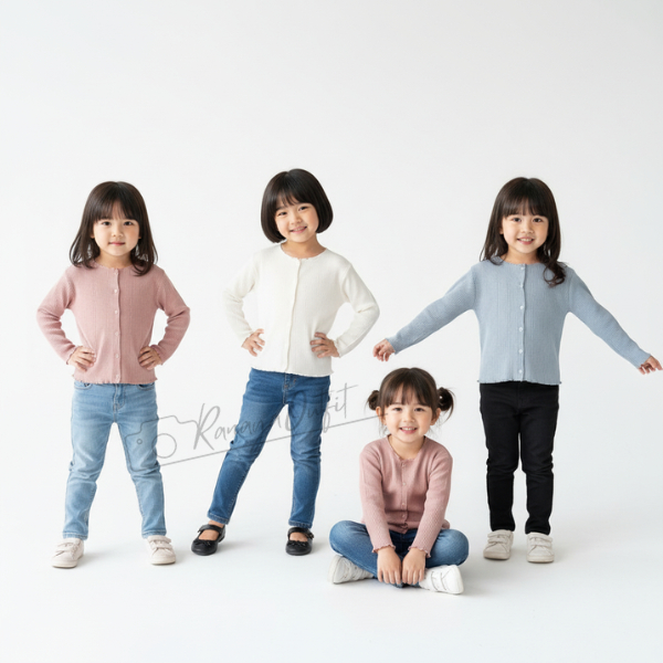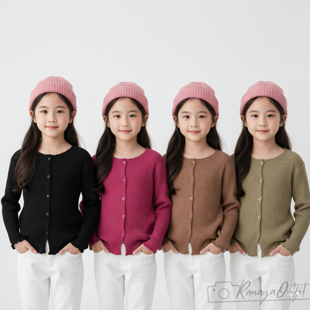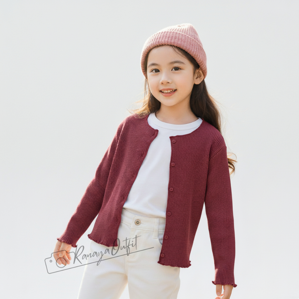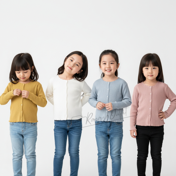 Cardigan Anak Perempuan Premium Bahan Wafel Usia 2–12 Tahun