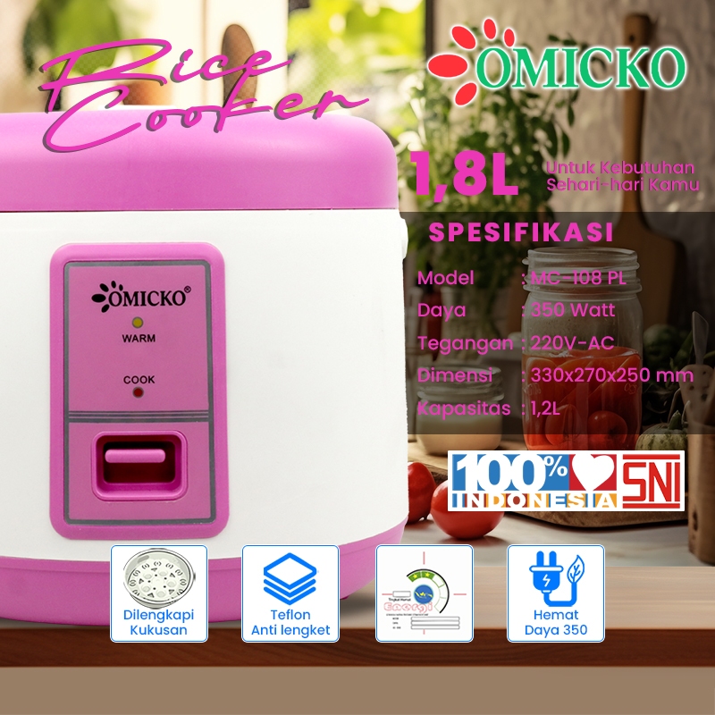 OMICKO RICE COOKER/MAGIC COM 3 in1/PENANAK NASI 1.2/1.8 LITER/Elektronik Rumah Tangga/Magicom Kecil/Rice Cooker kecil/MC-108 PL / MC-101 PL