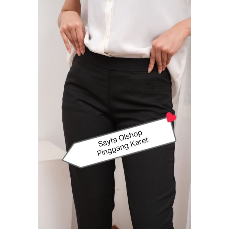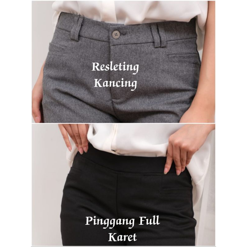 Celana Bahan Kerja Wanita Kantoran Resleting Pinggang Karet Katun