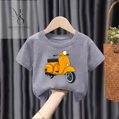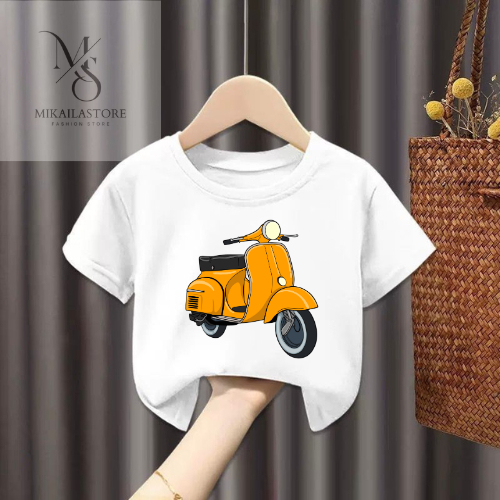 Kaos Anak Logo Vespa Usia 2-16Tahun Unisex Baju Kaos Oblong Kaos Anak Lengan Pendek