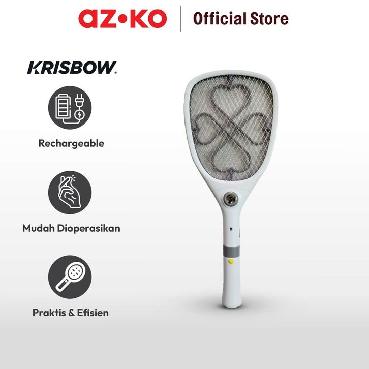 AZKO Krisbow Raket Nyamuk Rechargeable Dengan Soket Bug Zapper Mosquito Killer Mosquito Racket Swatter Nyamuk Listrik