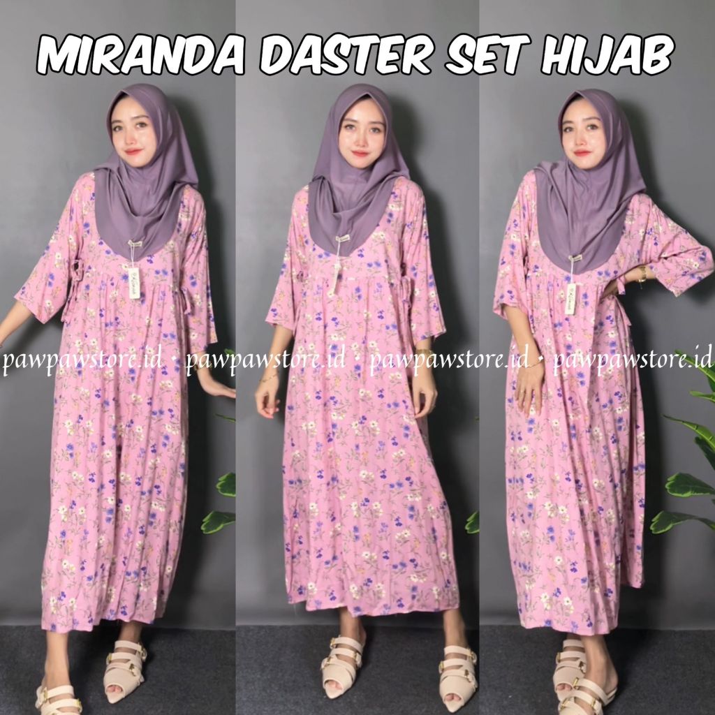Midi Dress set hijab 110cm - daster rayon motif Lengan 3/4 Bumil Busui friendly