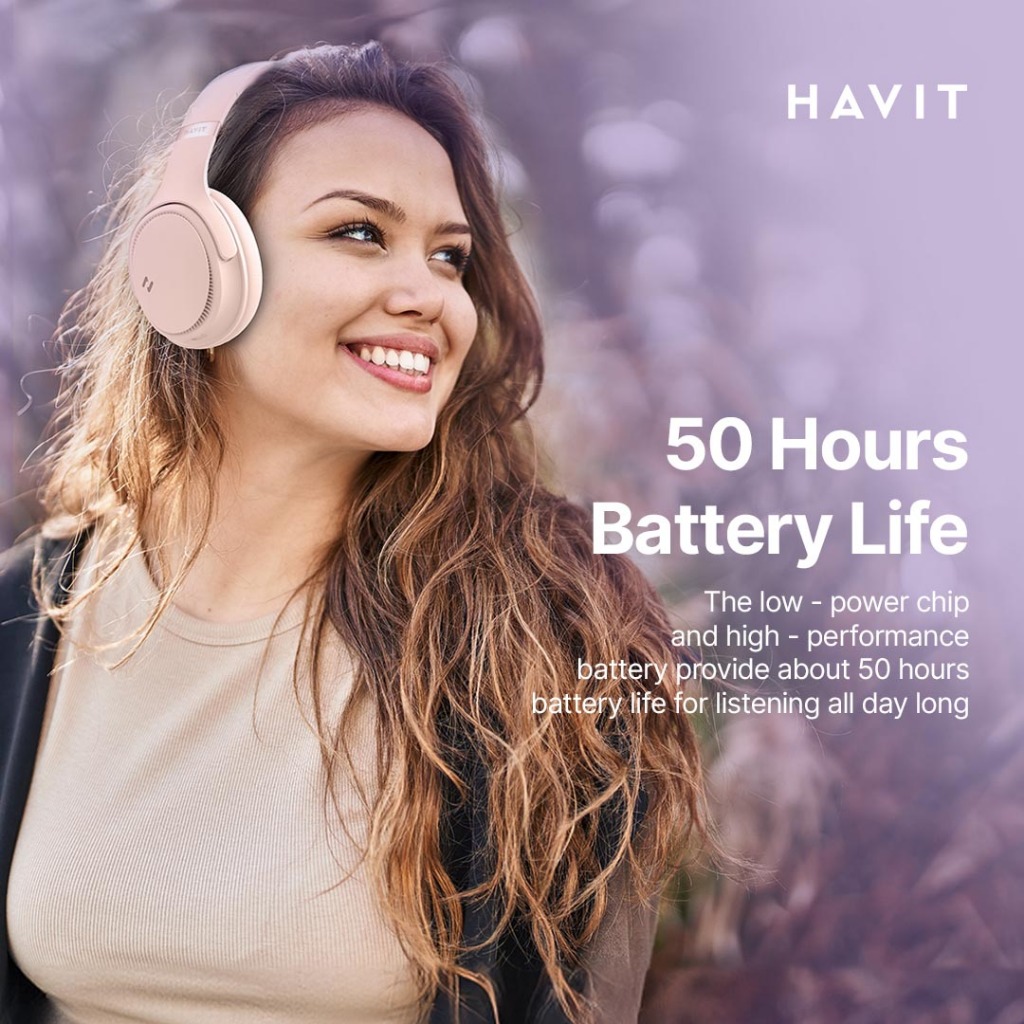 Havit H630BT PRO ANC Wireless Headphones Crystal Clear Calls Dual Device Connection - Pink