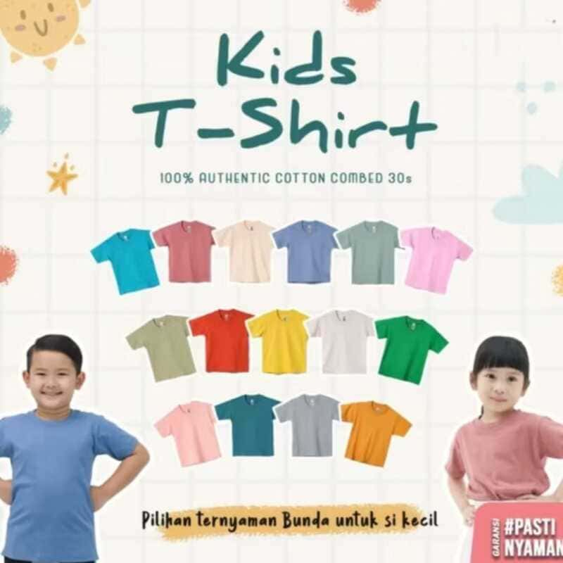 Kaos Anak Polos Laki Laki Perempuan Premium 100 PERSEN Cotton Combed 30S Pilih Warna Kids Umur 1-8 Tahun