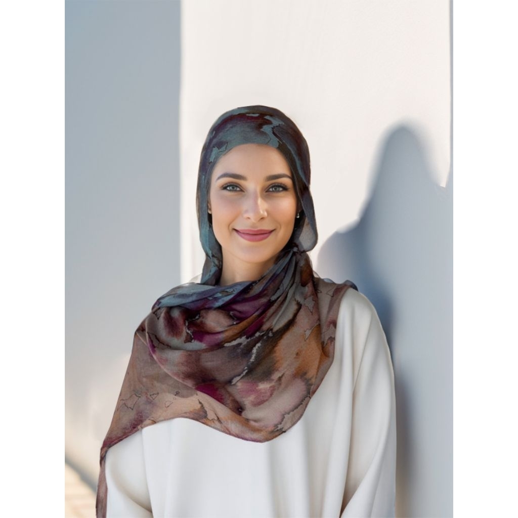 Pashmina Printed Viscose Cotton Pattern Watercolour Marble Lembut Nyaman Digunakan