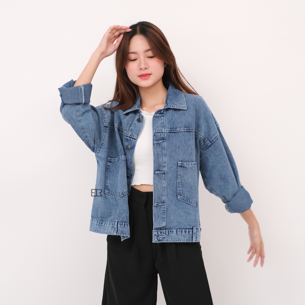 Jaket Jeans Oversize Saku Wanita Premium