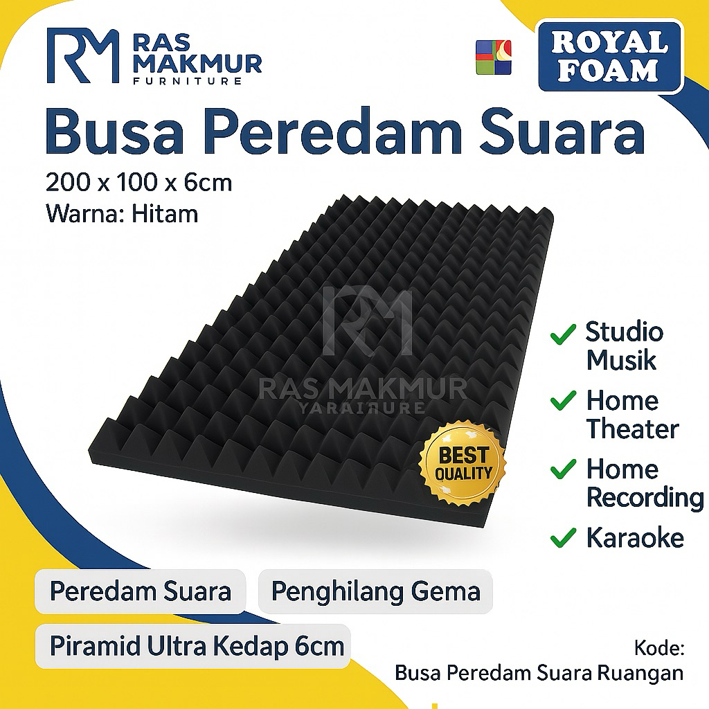 Busa Peredam Suara Piramid 200x100x6 cm – Akustik Studio | Motif Pyramid Tebal Royal Foam Dinding