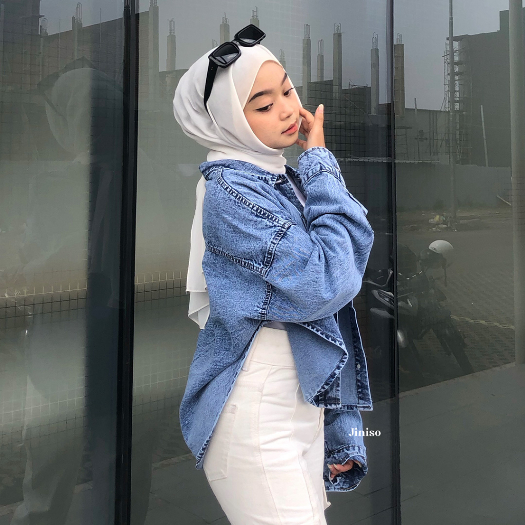 JINISO Jaket Crop Jeans Oversize Belle Basic Blue Acid