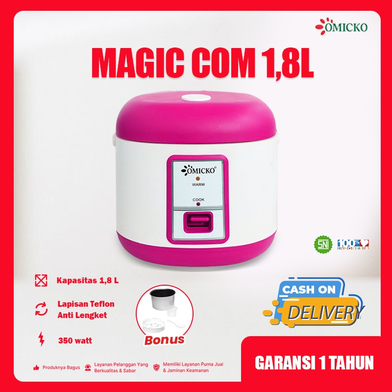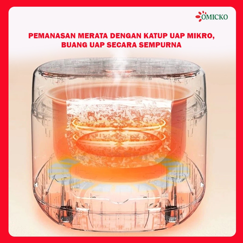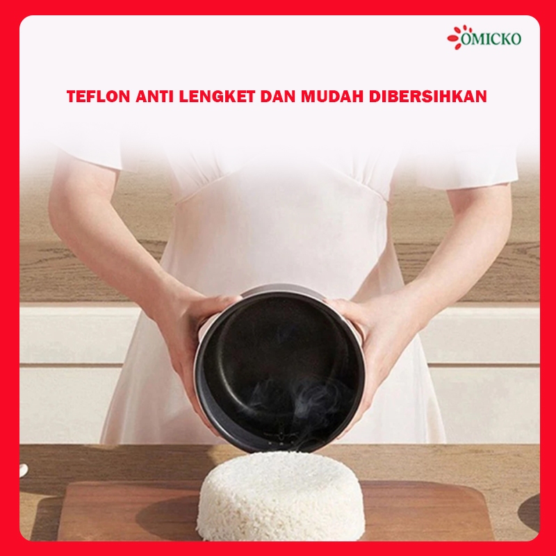 Magic Com OMICKO 1,2L – Rice Cooker Mini Teflon Anti Lengket 350 Watt + Bonus Wadah