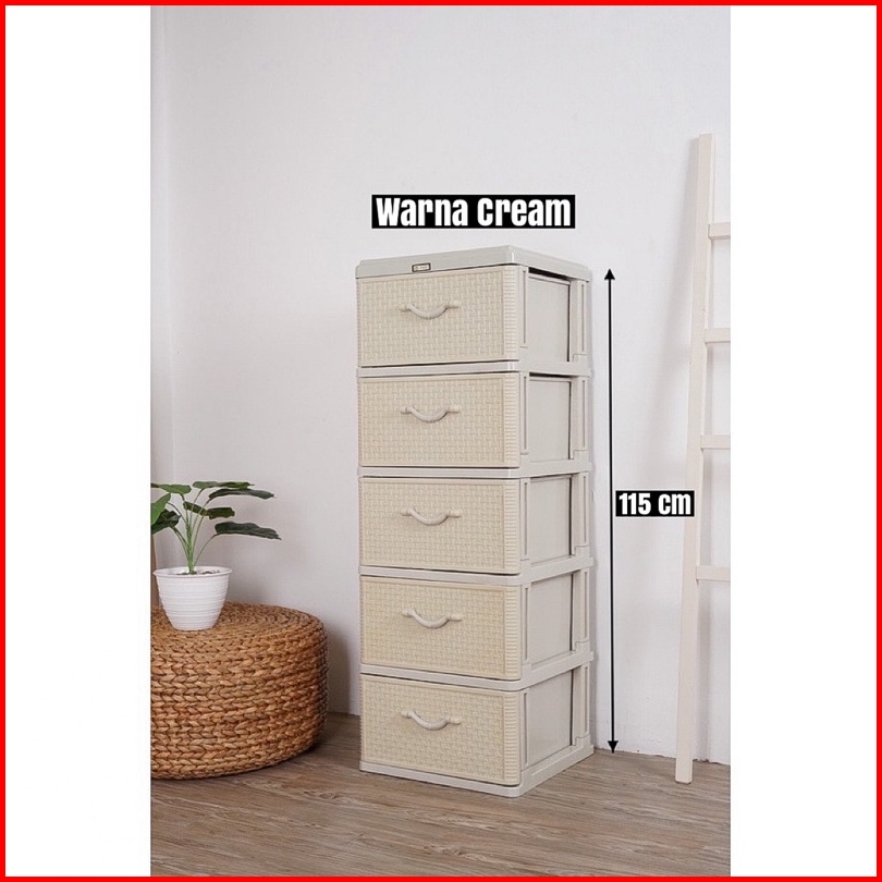 Laci Pakaian Plastik Rak Pakaian 5 Susun Motif Rotan Murah Dan Kokoh