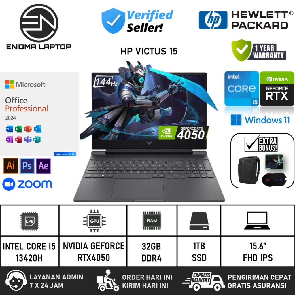 Laptop Gaming HP Victus 15 Intel i5 13420H RTX 4050 RAM 32GB 1TB SSD 15.6" FHD 144hz Win 11 Home