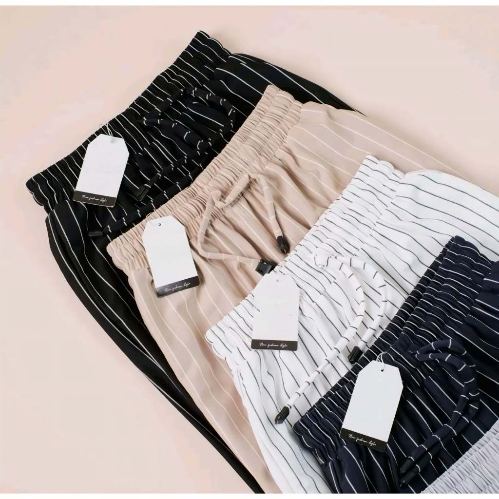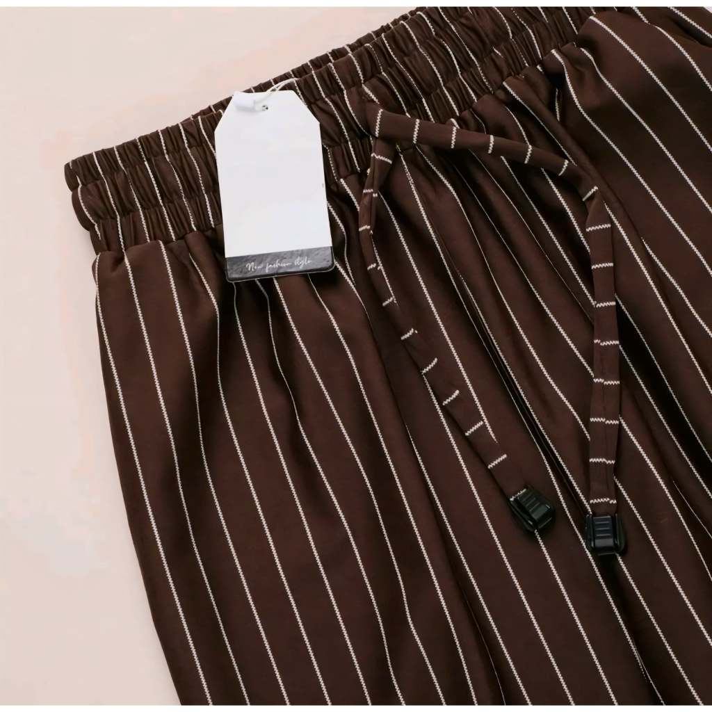 Celana Panjang Highwaist Wanita Everyday Pants Stripe Bangkok Katun