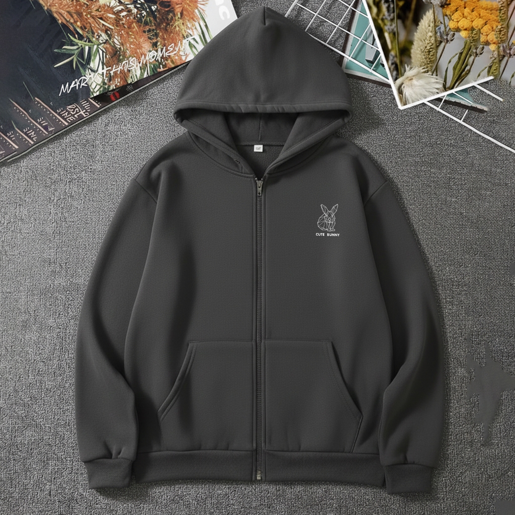 Harvional Hoodie Zipper Cute Bunny Bordir Size S - XXL Pria & Wanita