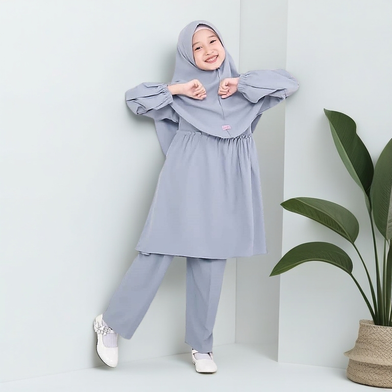 Baju Stelan Anak Fashion Muslim Free Hijab Usia 8-12 Tahun Baju Anak Perempuan Stelan Anak Perempuan Terbaru