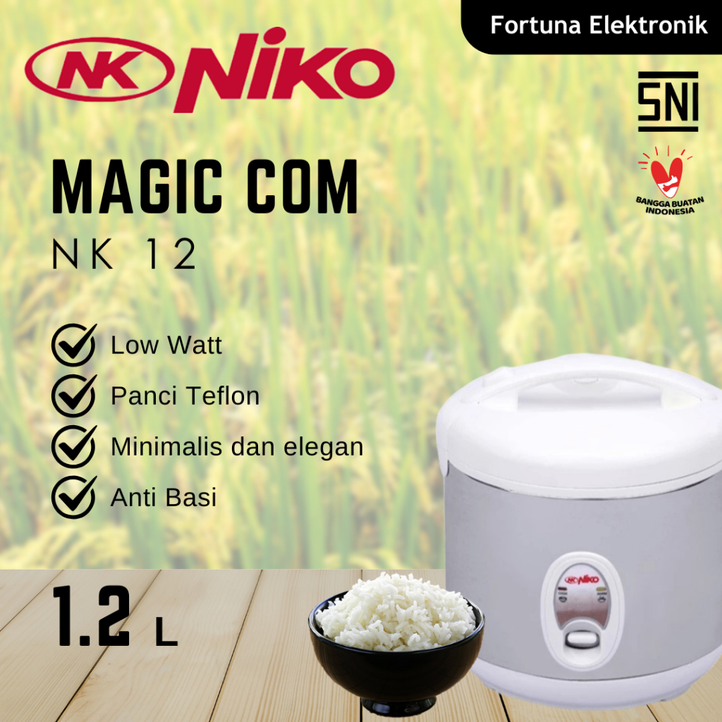 Niko Rice Cooker NK 12 WS / BG / BTQ Magic Com 1.2 Liter Anti Lengket