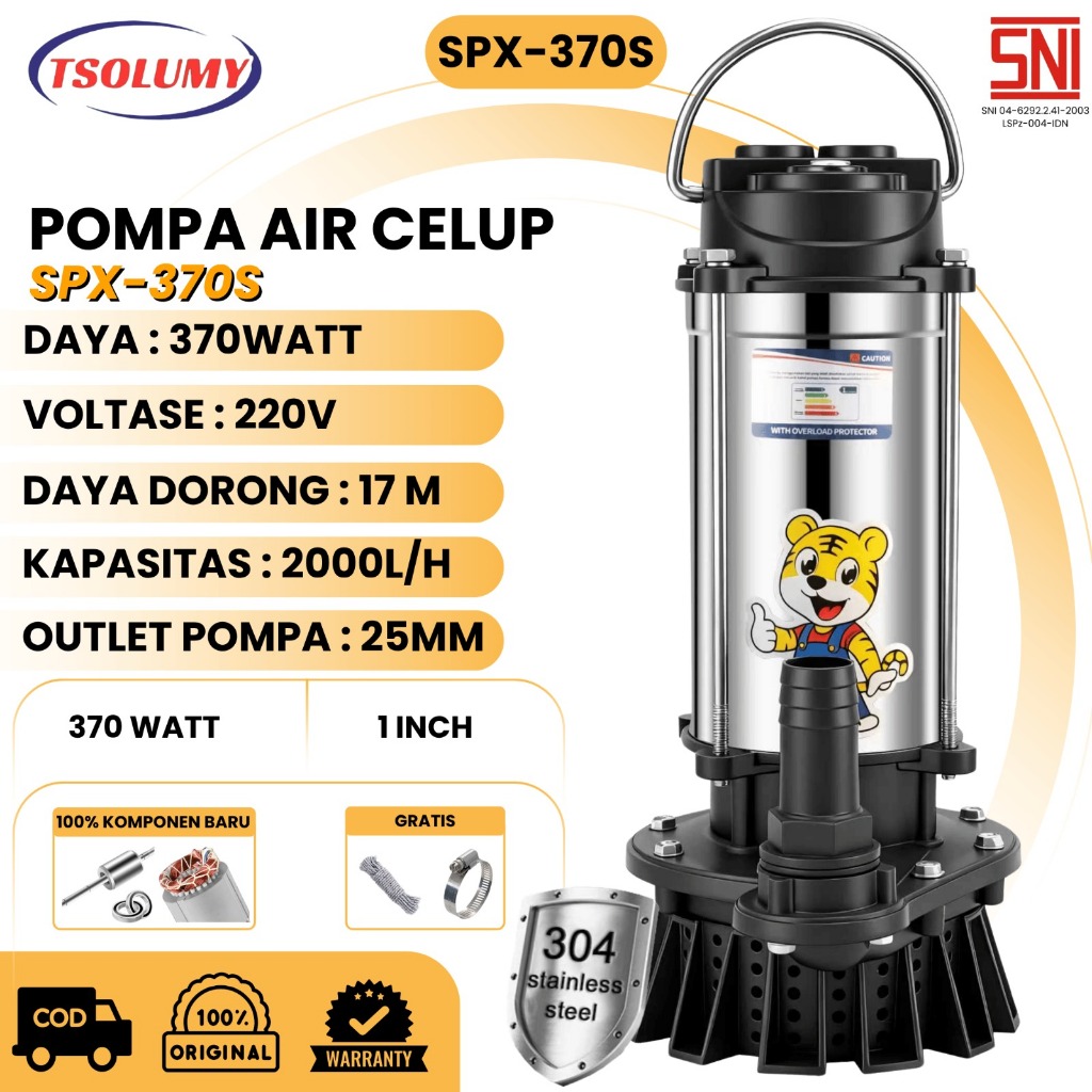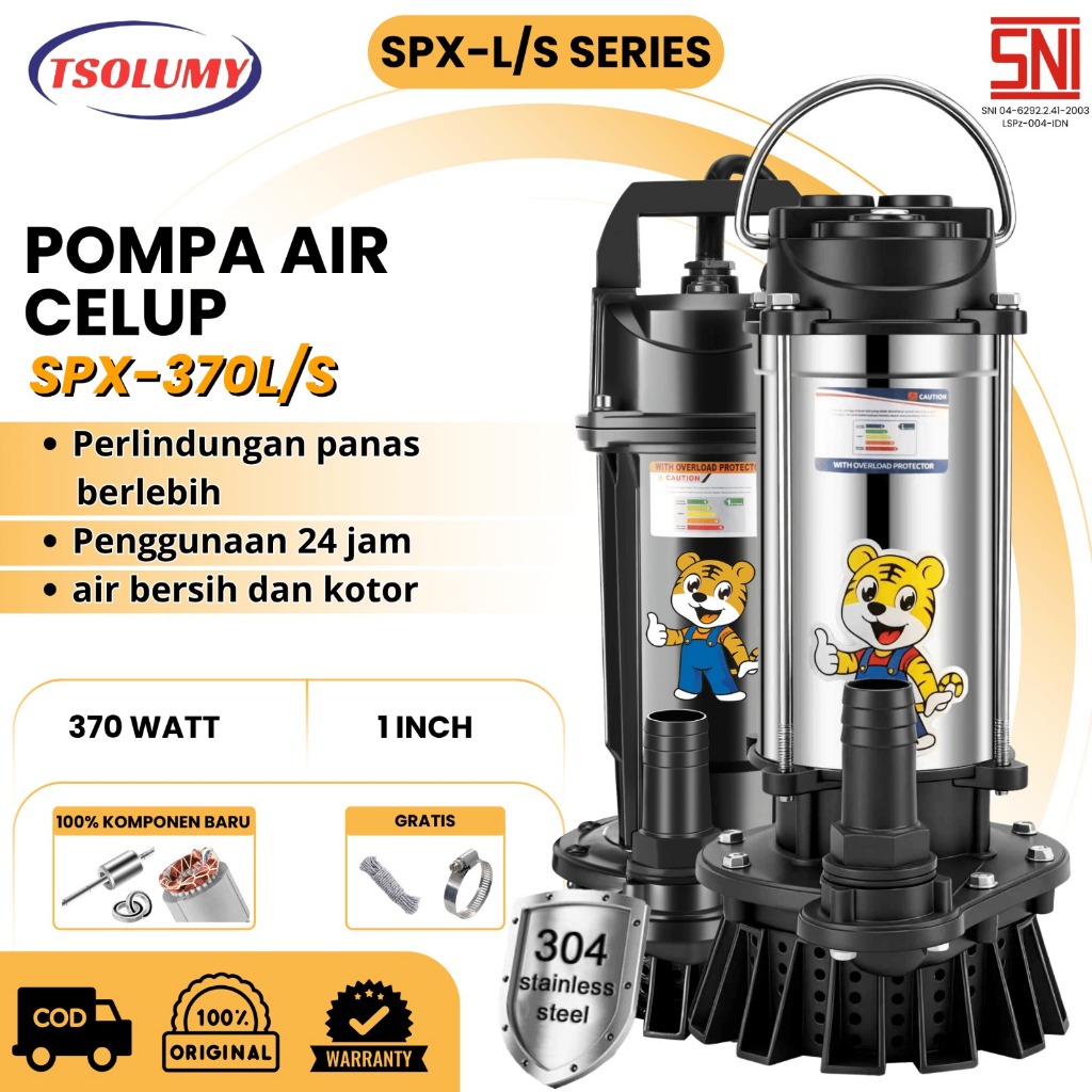 Tsolumy SPX-370L/S Pompa Air Bersih Keruh 370W 220V Outlet 25mm Submersible Pompa Taman Pompa Kolam