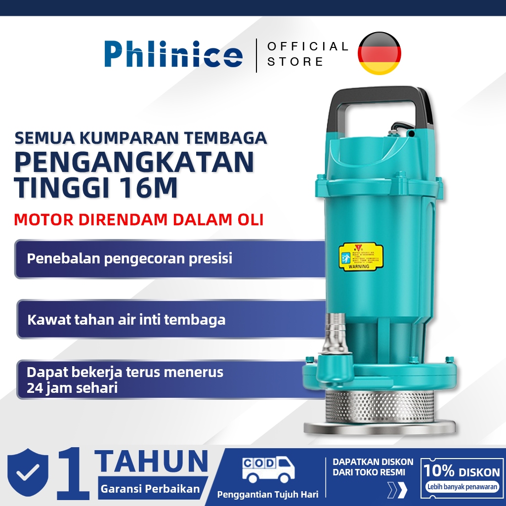 Phlinice Pompa Submersible 220V Pompa Limbah Kecil Pompa Rumah Tangga Pompa Pertanian Angkat Tinggi Irigasi Aliran Besar