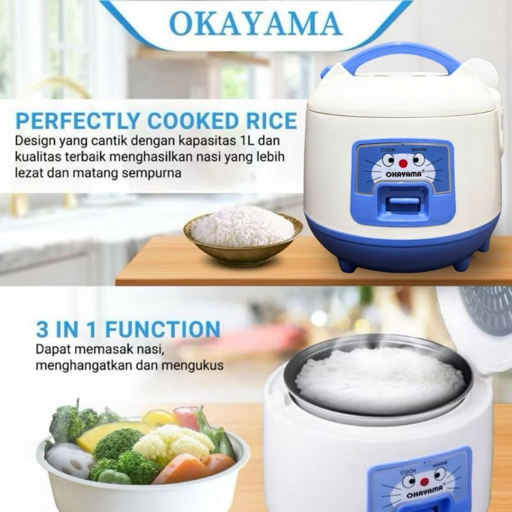 Magic Com Okayama OK 105 Rice Cooker 1L Anti Lengket Mejikom Hemat Daya Bergaransi