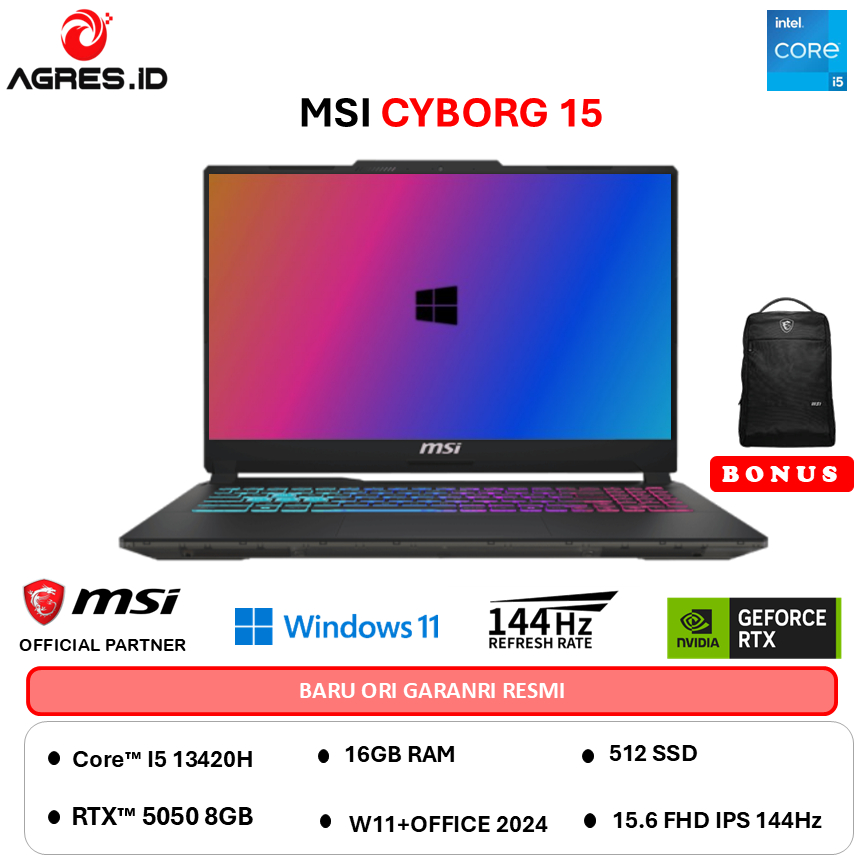 MSI CYBORG 15 I5 13420H RTX5050 8GB - RAM 16GB 512GB W11+OHS 15.6FHD 144HZ-B13WEKG.475
