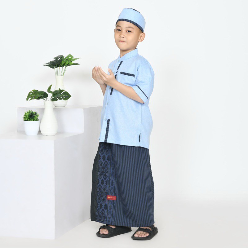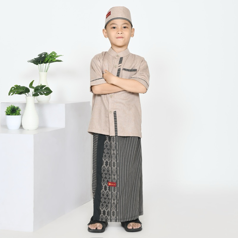 Setean Anak Set Sarkoci Sarung Celana, Koko, Dan Peci Celana Sarung Motif Songket Setelan Baju Muslim Anak