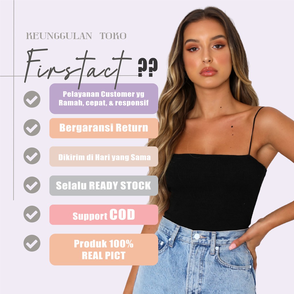 Tanktop Wanita Polos Square Spageti Tali Kecil Tank Top Wanita Korea Bahan Spandex