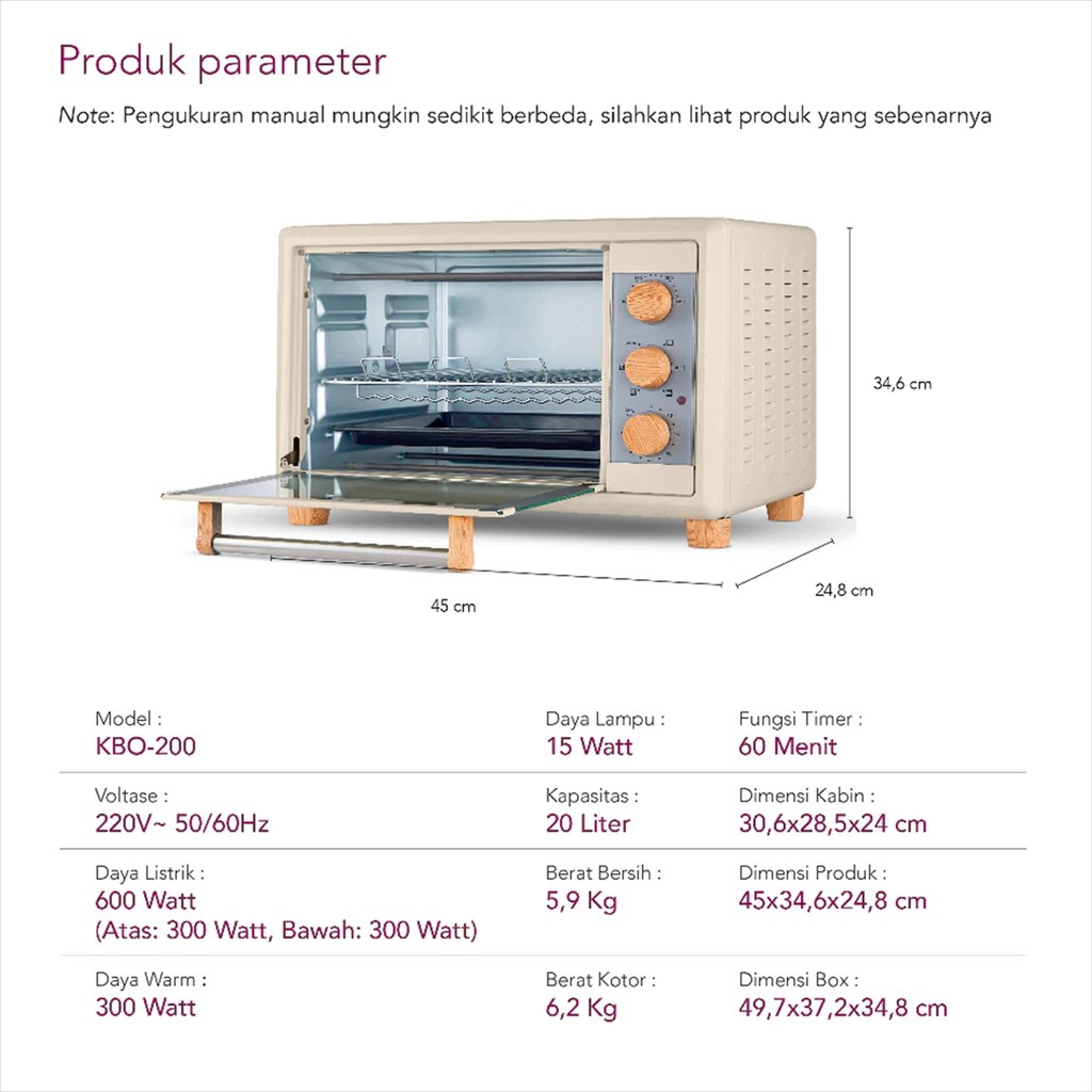 Kirin Oven 20 Liter Low Watt KBO-200 Oven Omni Toaster Pemanggang Elektrik Kirin 20L KBO 200