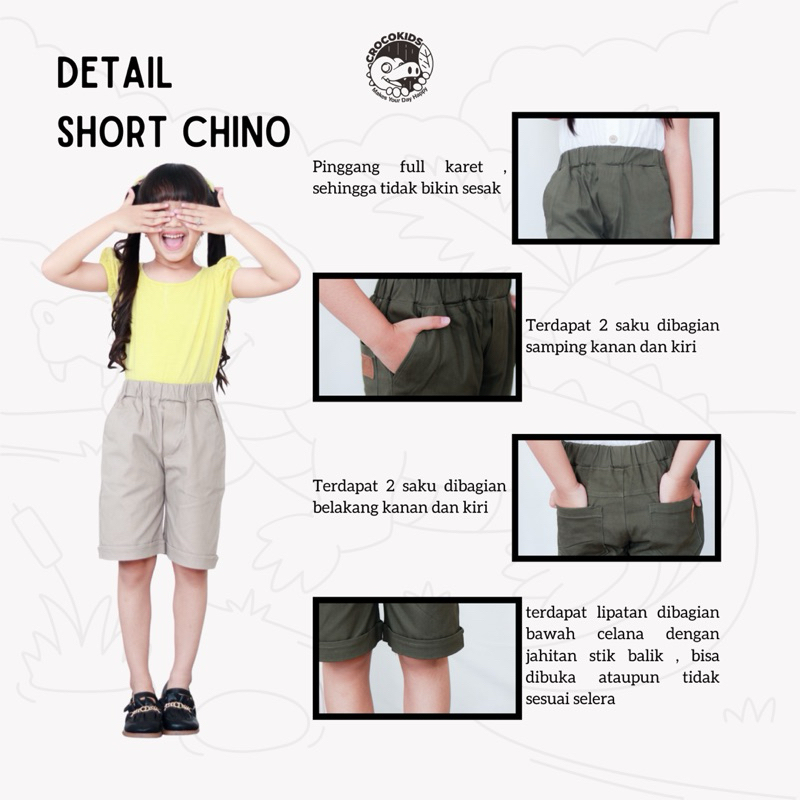 Celana Pendek Anak Chino Laki-Laki Dan Perempuan Crocokids Short Pants Anak Premium 6 Warna Unisex