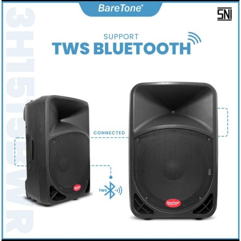 Speaker Portable Aktif 15 Inch RMS 250 Watt BARETONE BT-3H1515BWR / 15BWR Original Bluetooth TWS