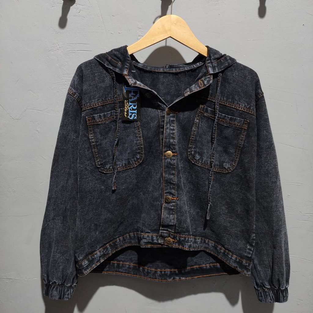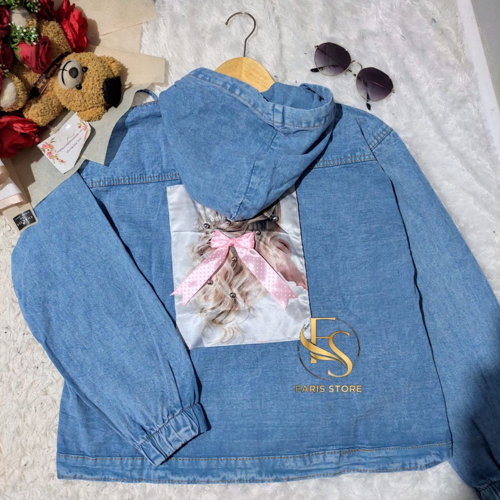 Jaket Jeans Wanita Hoodie Jacket Denim Tebal Jumbo Korean Style Terbaru