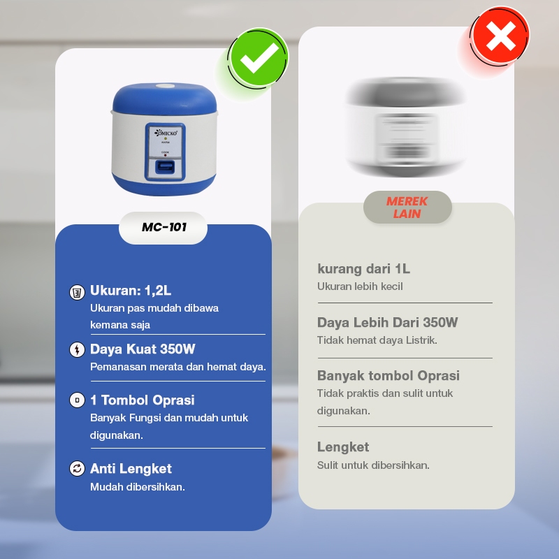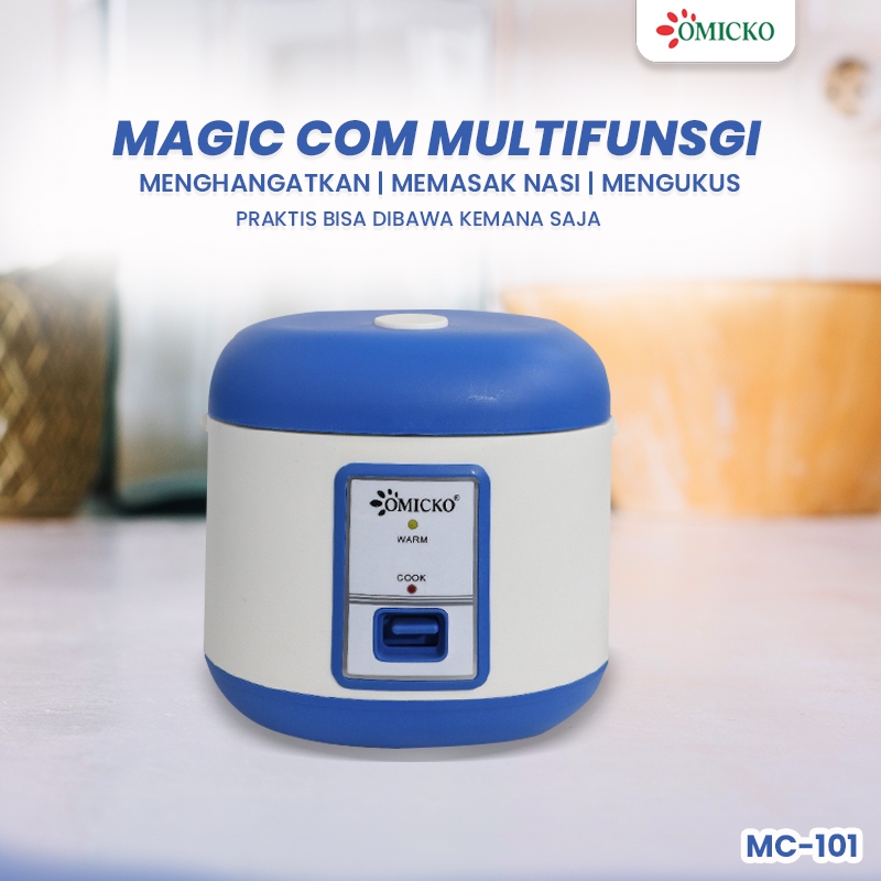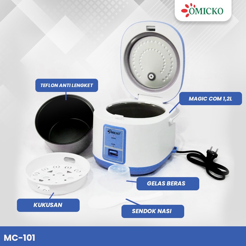 Rice Cooker Biru Omicko 1.2L – Kukusan + Bonus takaran beras– Hemat Listrik 350W – Rice Cooker Mini