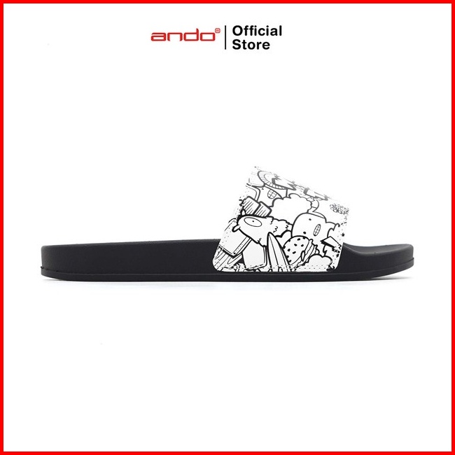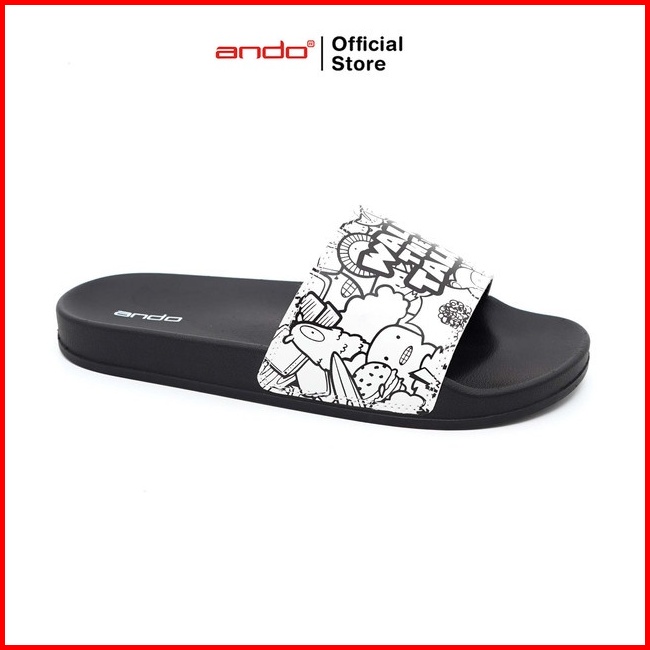 Ando Sandal Selop Slip On Artz Wtt Pria Dewasa - Putih Hitam