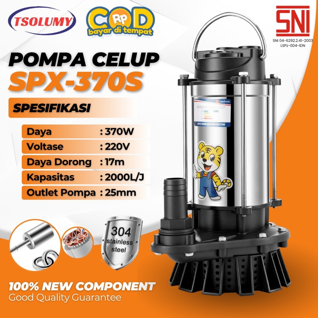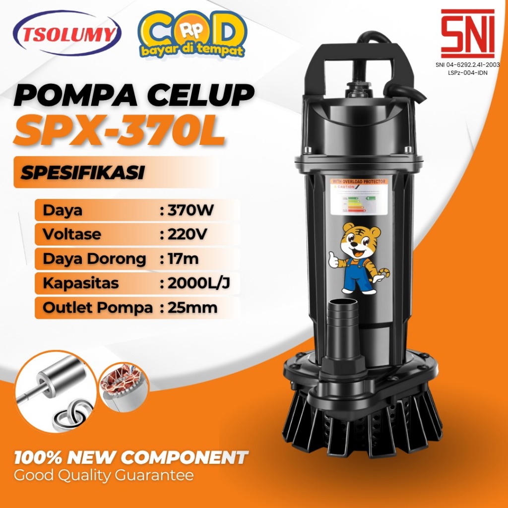 Tsolumy Pompa Air SPX-370L & SPX-370S Pompa Celup Air Bersih 370Watt Pompa Celup Rumah Tangga
