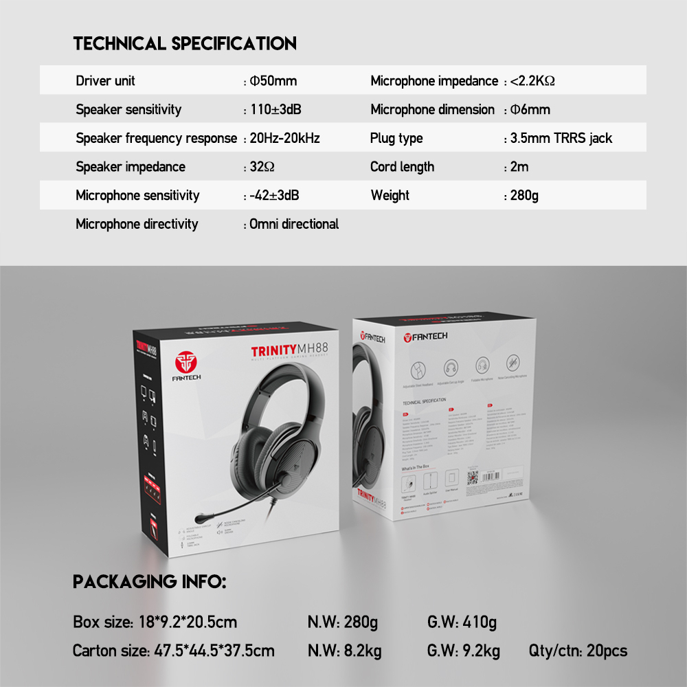 Fantech TRINITY MH88 Mobile Headphone Multiplatform Headset Gaming Mobile free Splitter Garansi 1 Tahun