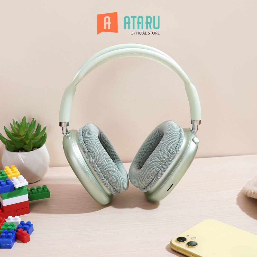 Ataru Headphone Bluetooth V5.3 - Hijau On Ear Headphones Nirkabel Headset Telinga Wireless Aksesoris Gadget