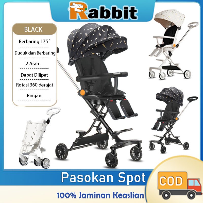 Rabbit Stroller Baby 2 Way Foldable Newborn Can Lie Flat Ringan Putih