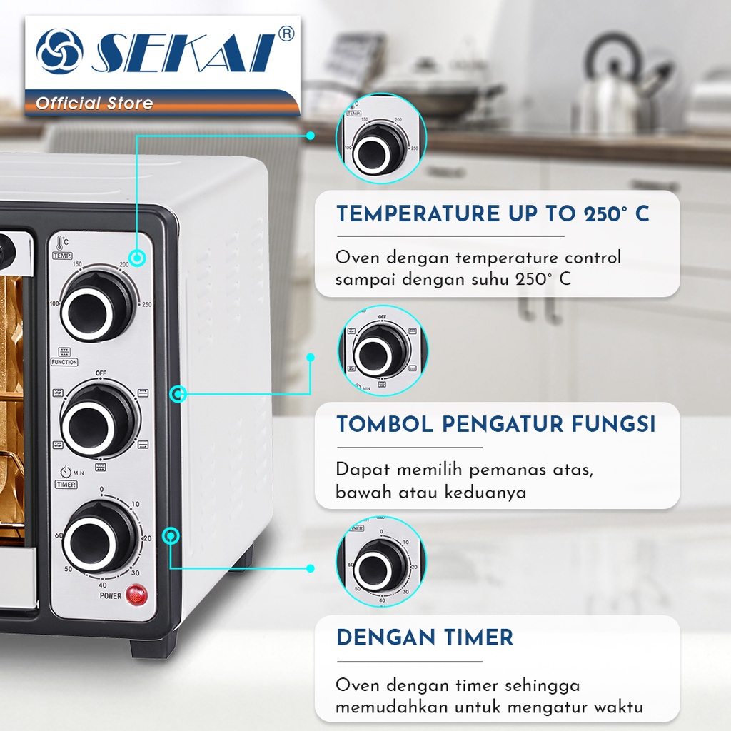 SEKAI Oven Listrik Low Watt Kapasitas 21 Liter Pemanggang Makanan Rotisserie - OV 210 21L