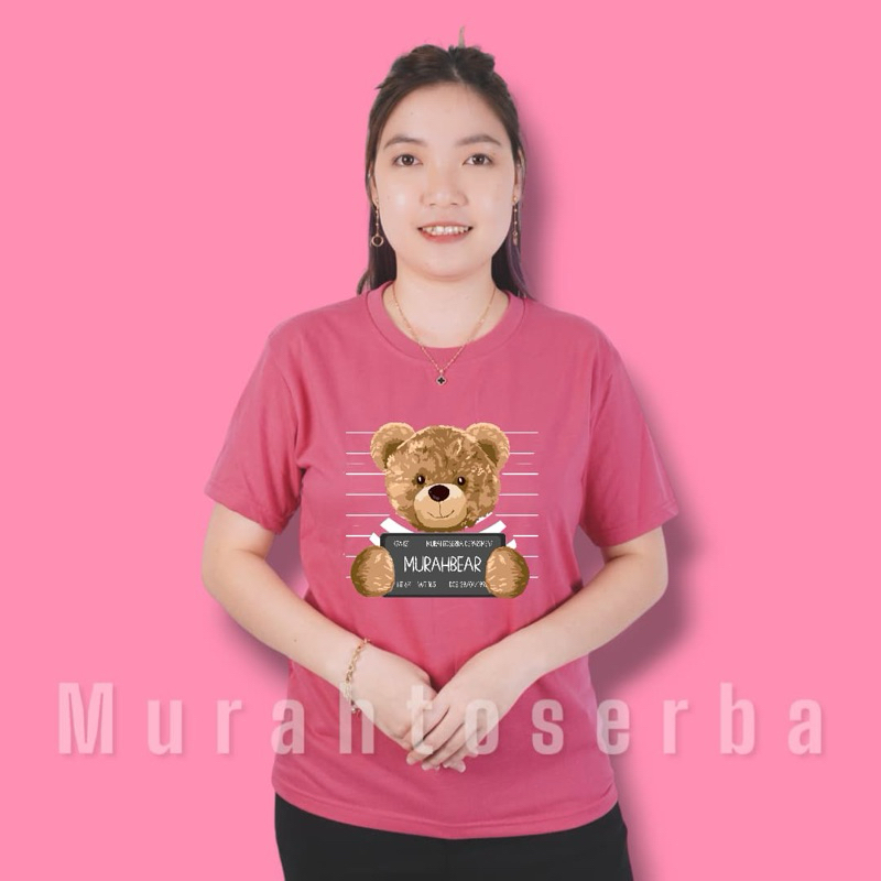 Kaos Wanita Motif Bear Me Lengan Pendek Bahan Babyterry Cocok Untuk Santai 6Pcs