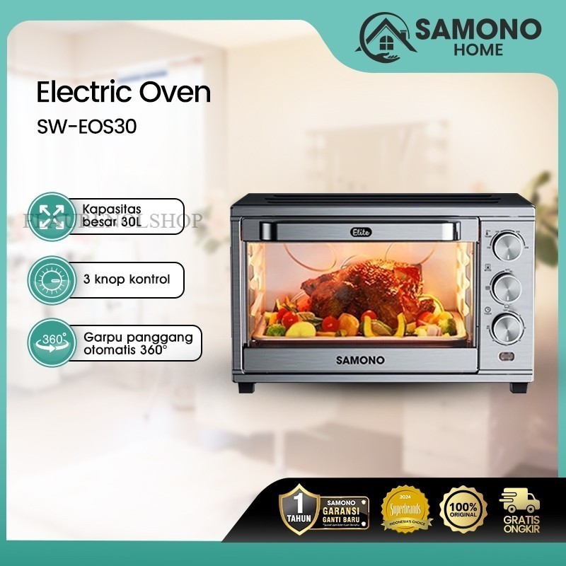 SAMONO SW-EOS30 Oven Listrik Low Watt 30 Liter Stainless Silver Pemanggang Serbaguna