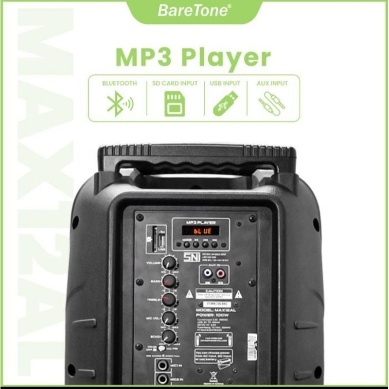 Speaker Active Portable Meeting Wireless 12 Inch BareTone MAX12AL / MAX-12AL Bluetooth ORIGINAL [ 2 Mic wireless ]