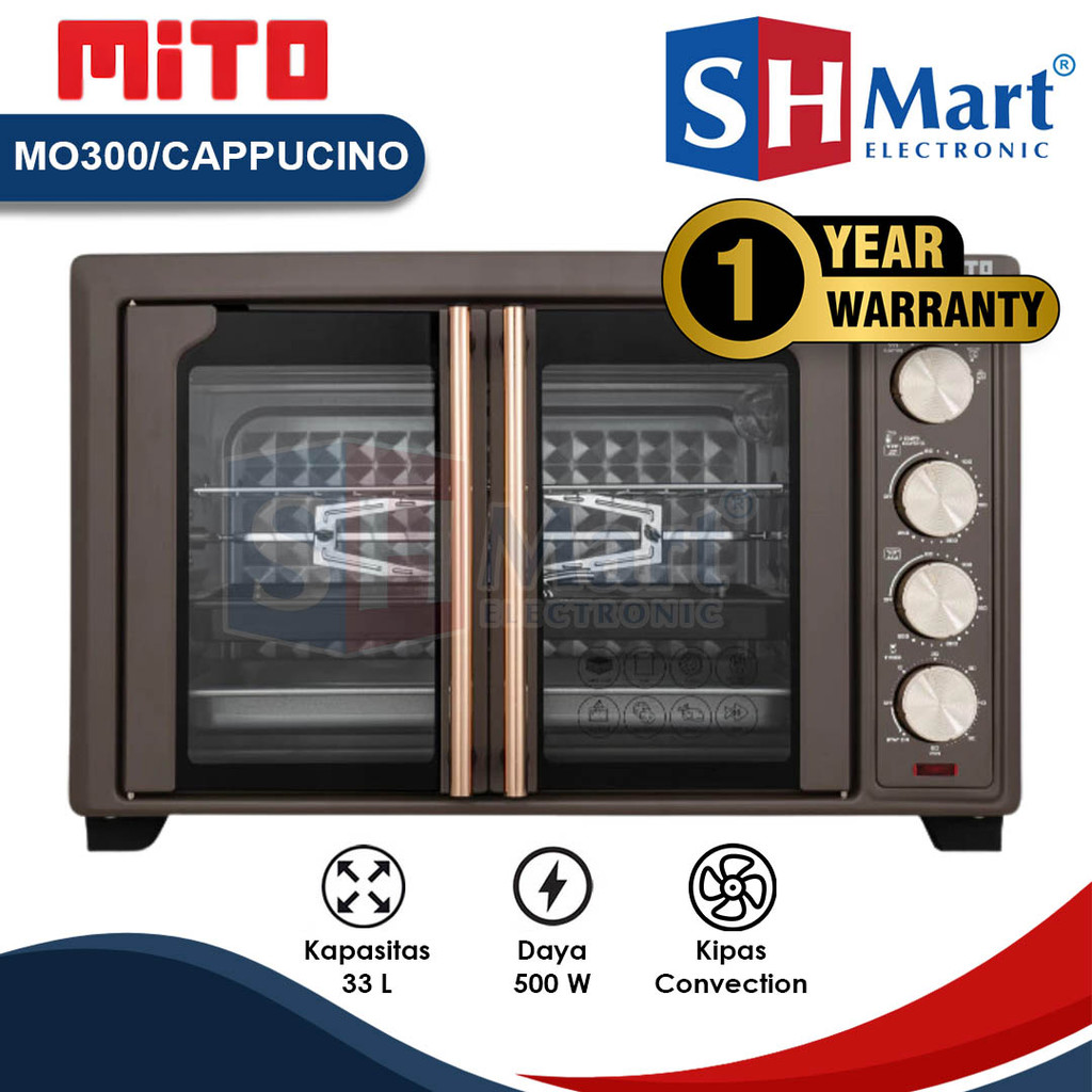 OVEN LISTRIK MITO 33 LITER MO300 DOUBLE DOOR 4 KNOB PEMANGGANG KUE DAN MAKANAN GARANSI RESMI