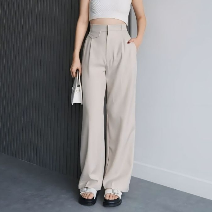 Oro Pants Knit- Celana Wanita Bahan | Loose Pants Trouser Highwaist