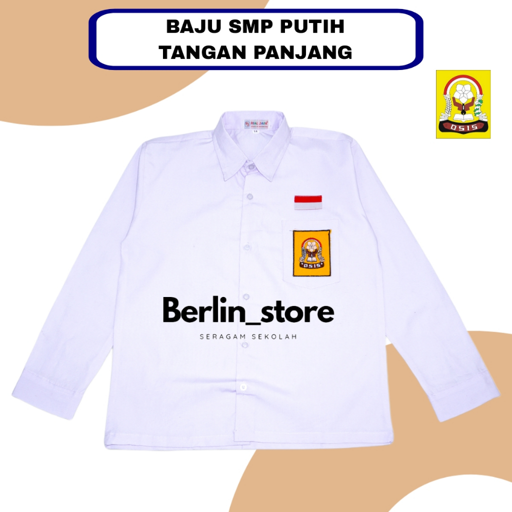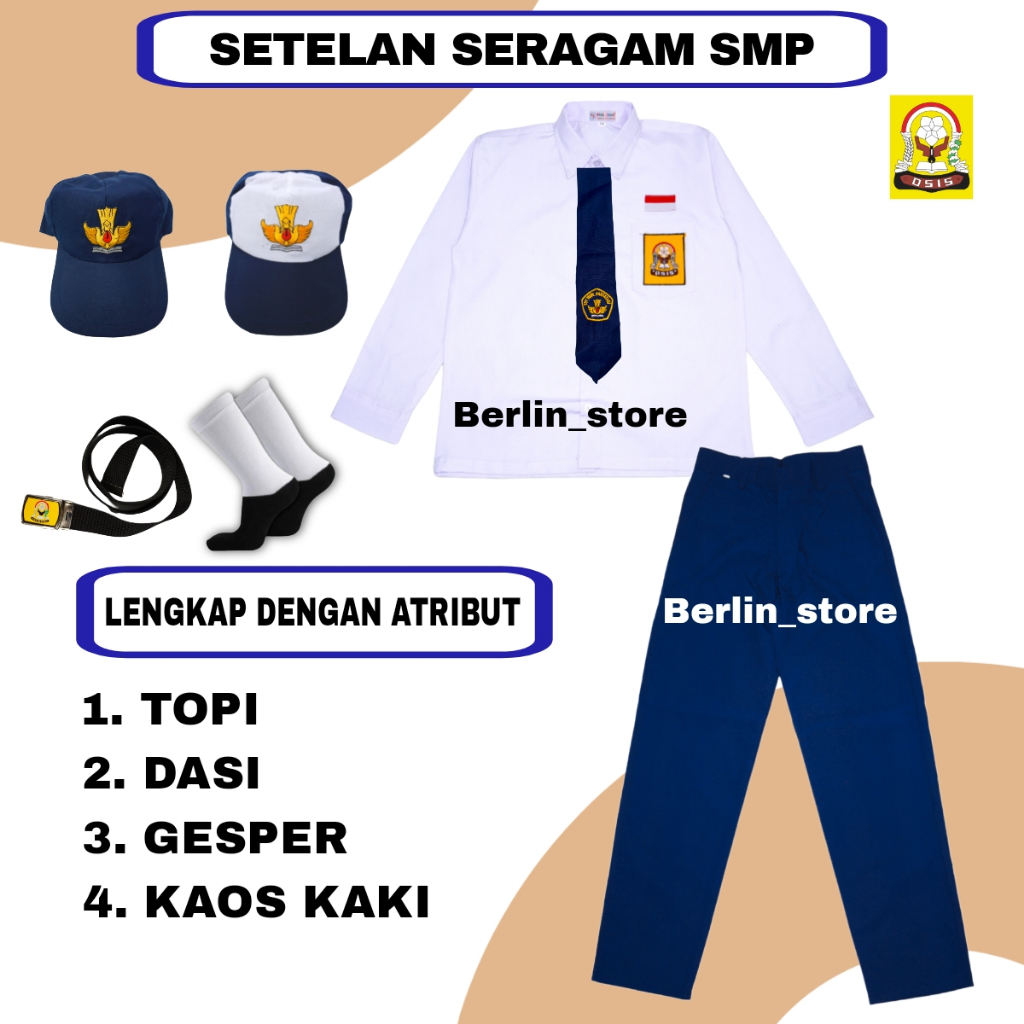 Setelan Seragam Sekolah SMP Biru Putih Anak Laki Laki Baju Putih Lengan Panjang Celana Biru Panjang