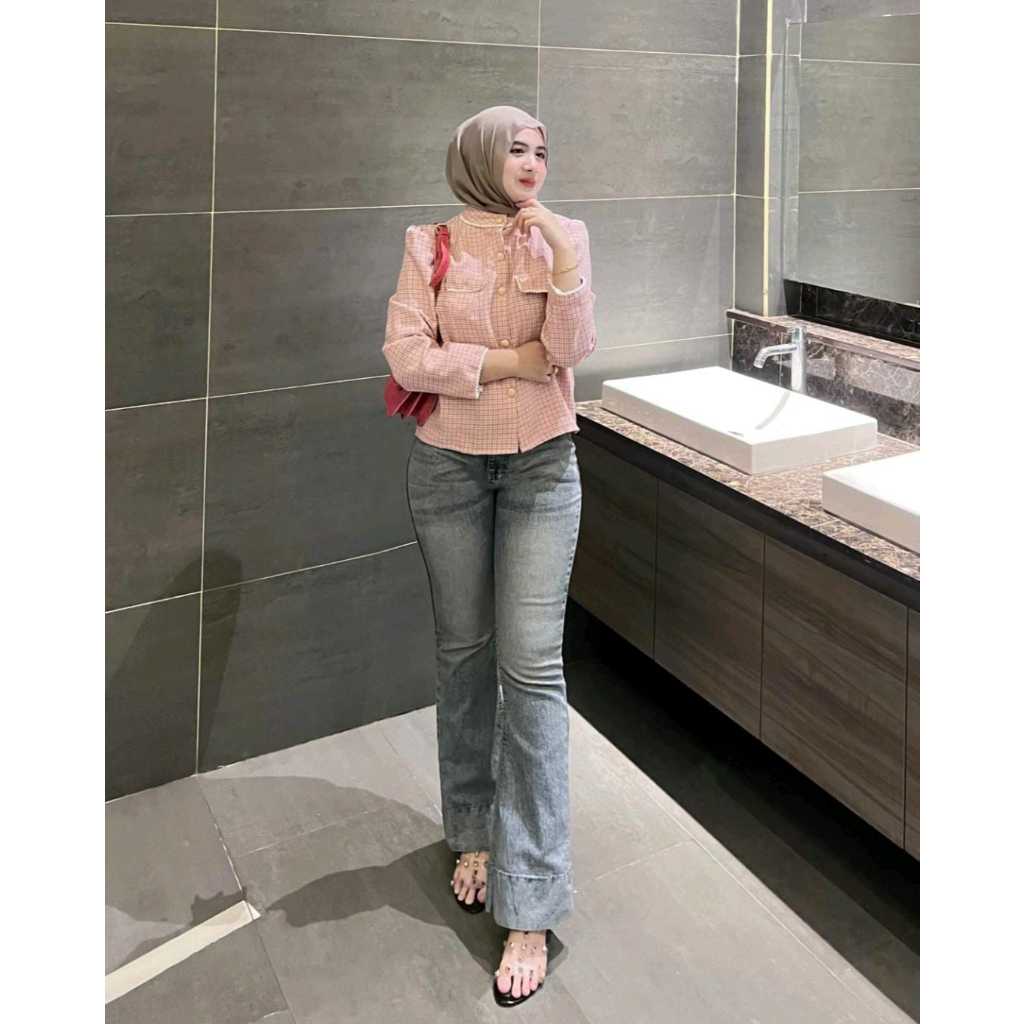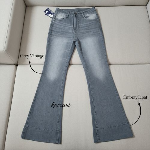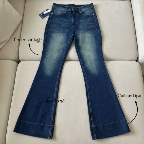 Kazumi - Cutbray Jeans Janita Higwaist Lipat Kaki Besar Jeans Strech Wanita Bawah Lebar