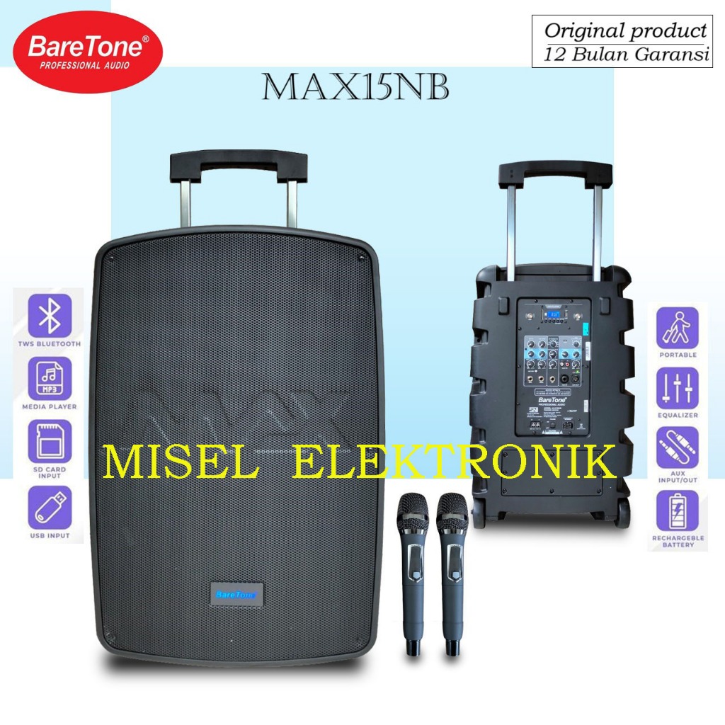 BareTone MAX15NB Speaker Aktif Portable 15 Inch Karaoke RMS 800 watt Bluetooth
